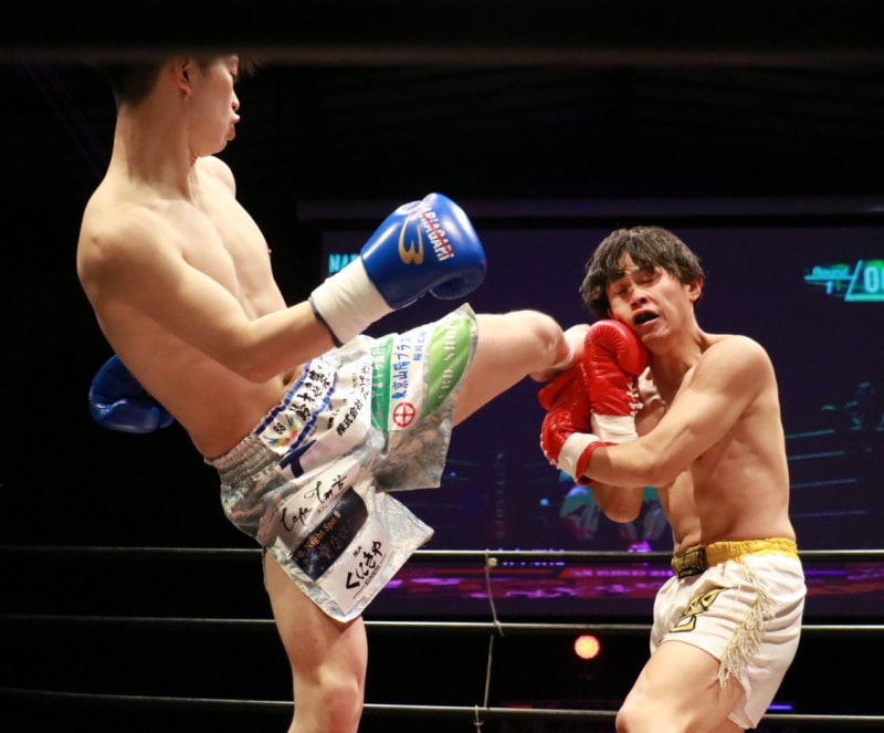楓冬のハイキックがヒット!内山の顔が歪む