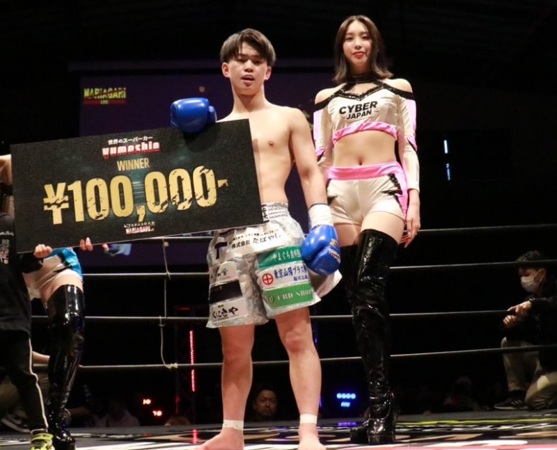 勝利した楓冬とラウンドガール