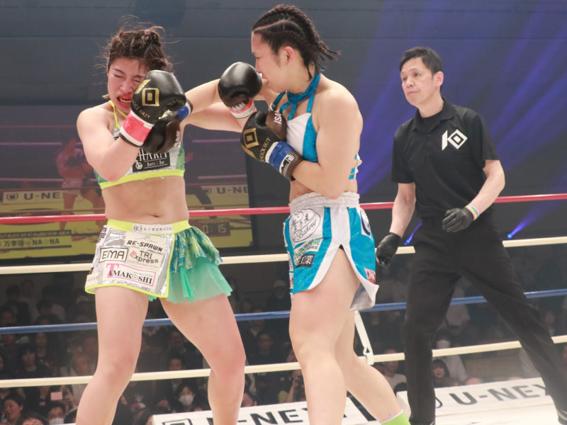 鈴木の顔が歪む!真っ向勝負のどつき合い