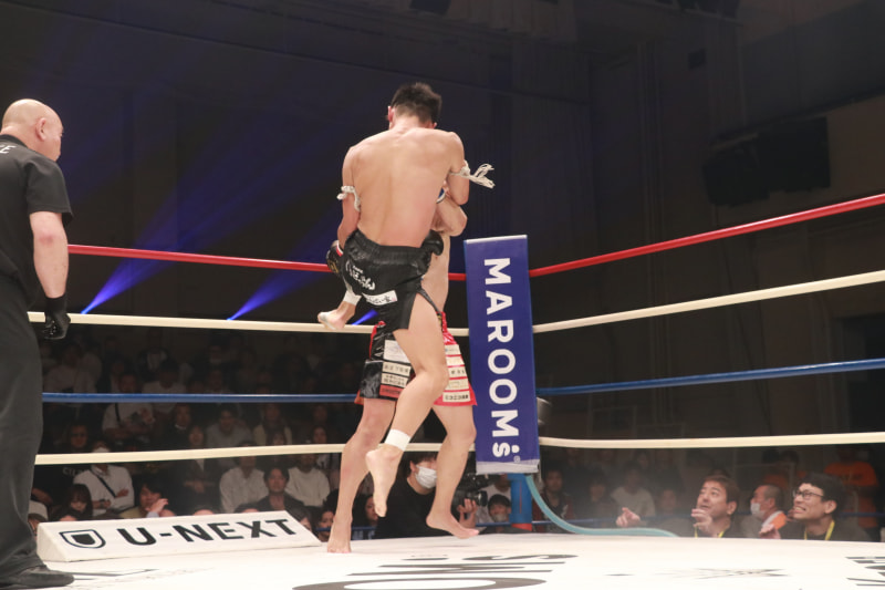 飛びヒザでダウンを奪う