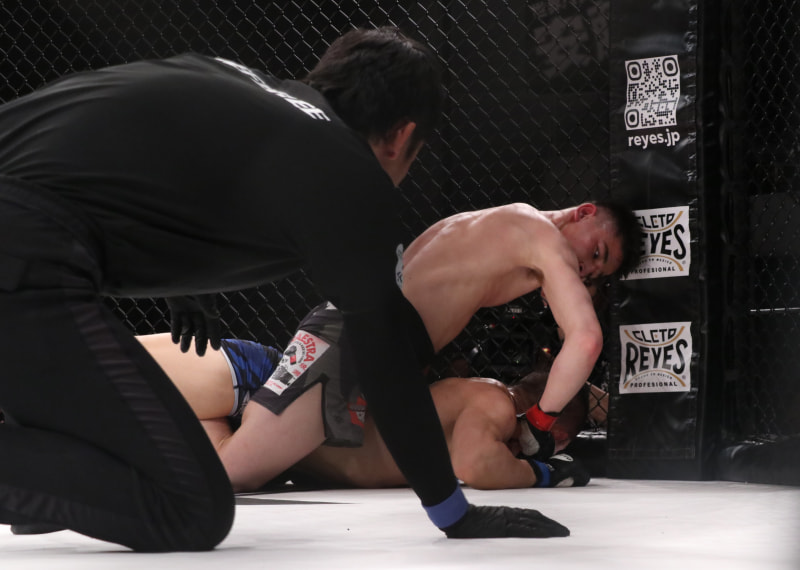 パウンド連打でTKO勝利した