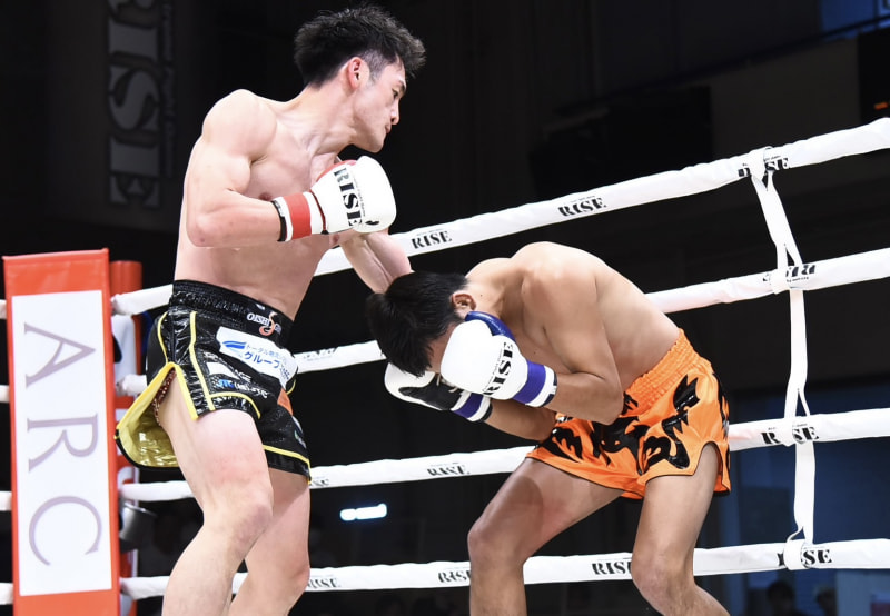強烈なパンチでヨーブアデーンにダメージを与えた大﨑