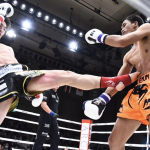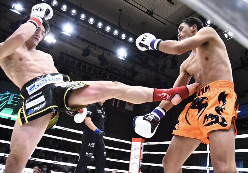 前蹴りを突き刺す大﨑