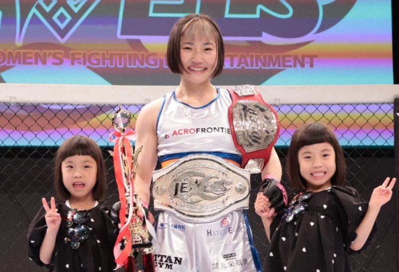 大島がDEEP女子&DEEP JEWELSミクロ級王者に!双子の娘と記念写真