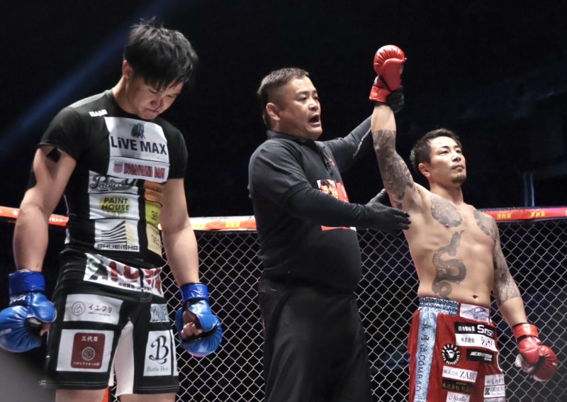 芸人・荒木(左)が元地下格王者・阿部に判定で敗れた