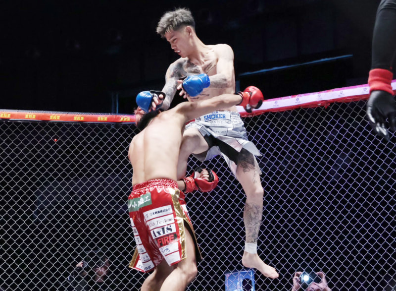 リキの飛び膝蹴り!