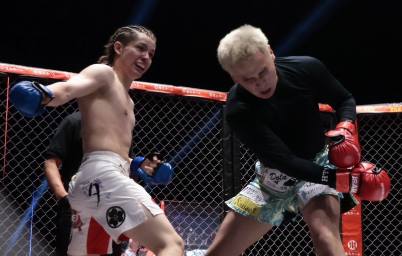 こめお(右)、復帰戦でカウアンに惜敗