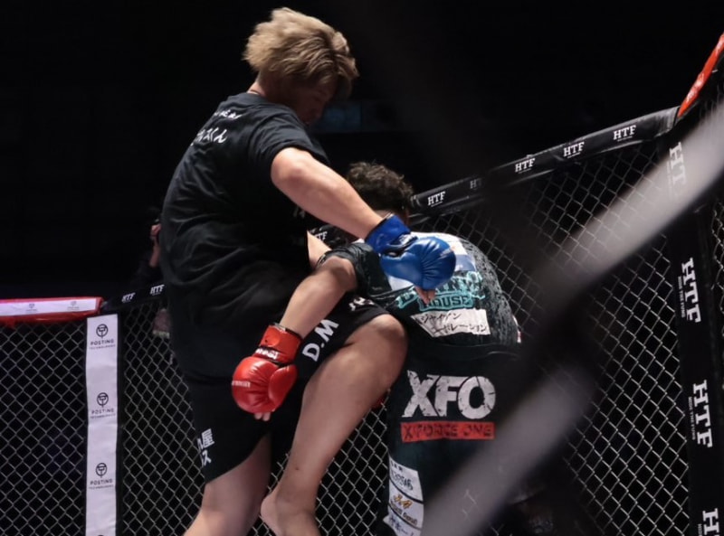ウルスのヒザ蹴りがヒット