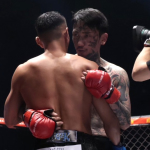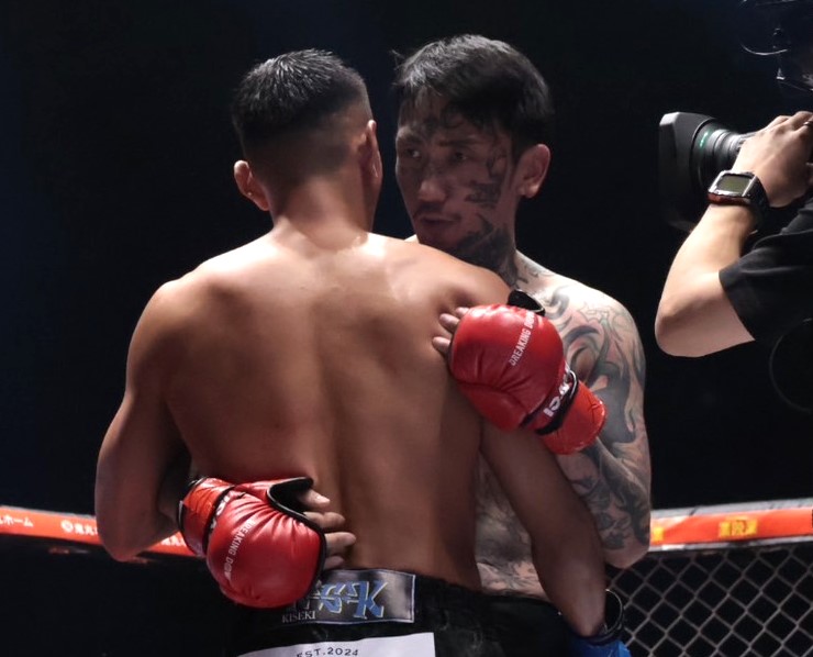 試合後は抱き合う瓜田と黒石