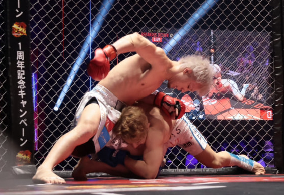 ジョリー(上)の足に組み付くYUSHI