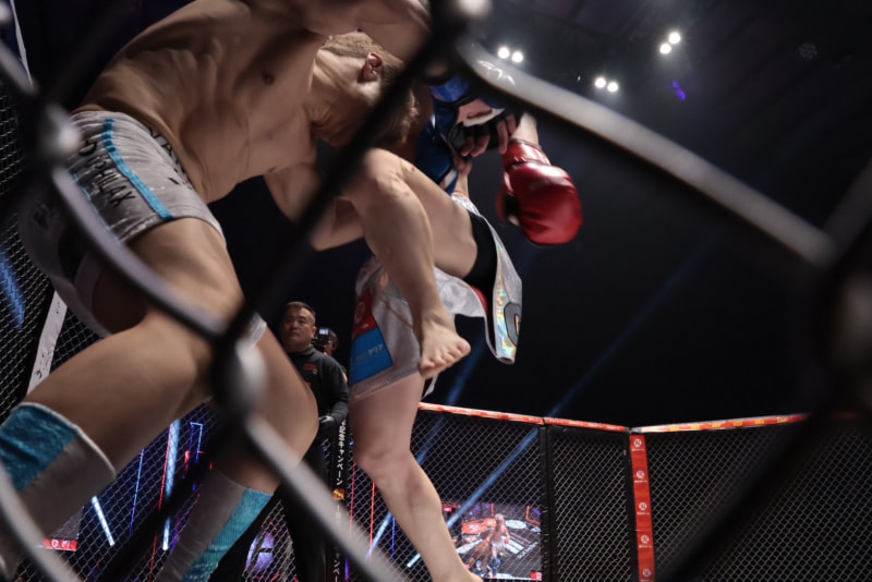 ジョリー、ヒザ蹴りを突き上げる