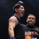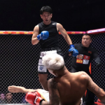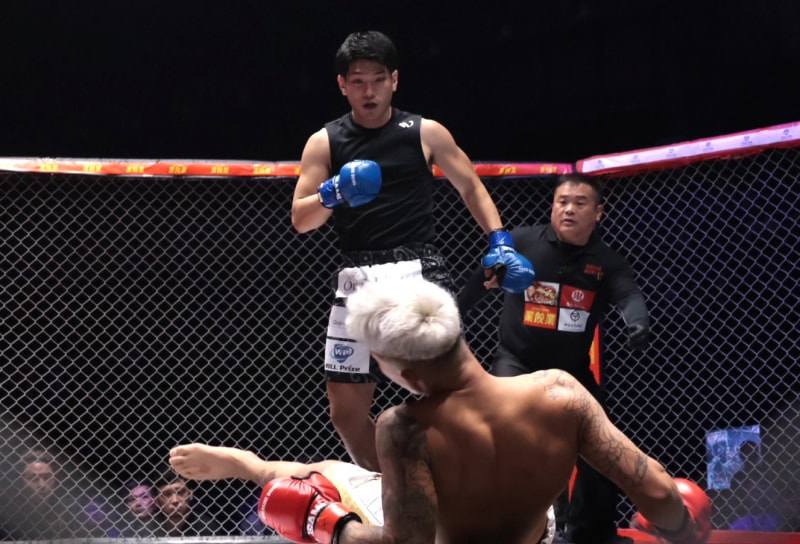 たつ(上)の左フックで、外枦保がダウン