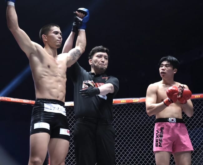 NAO(左)がミスター・ホンデ(右)を下してライト級T準決勝進出