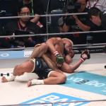 シェイドゥラエフ(右)のチョークに苦しむ武田
