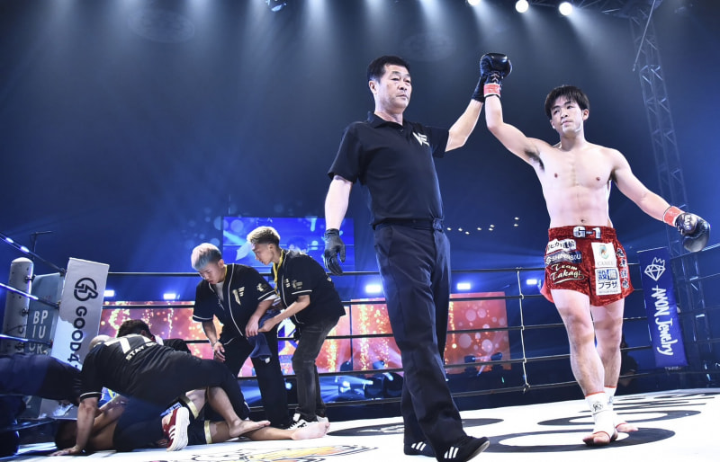 古木(右)がKO勝利!福田(左)は大の字にダウン