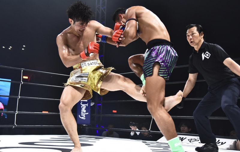 小笠原が左ローで前足を集中攻撃