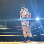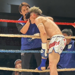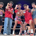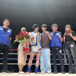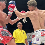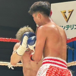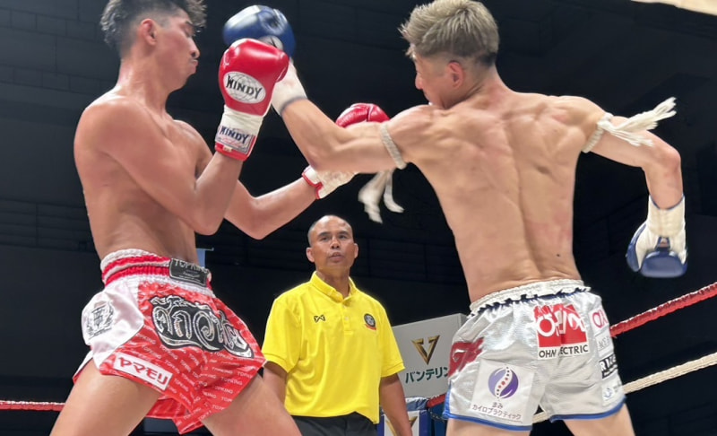 パンチを放つ梅田(右)