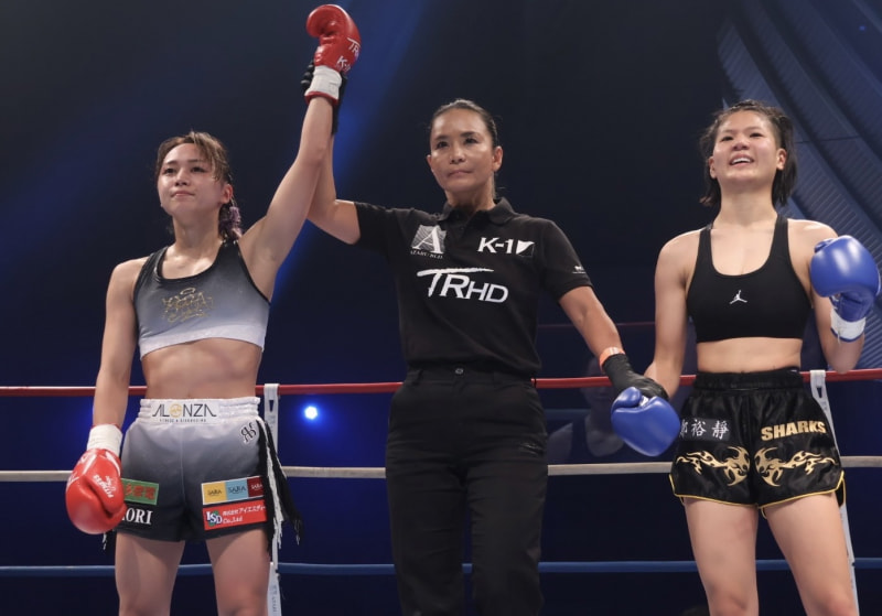 松谷(左)がダウンを奪い判定勝利