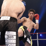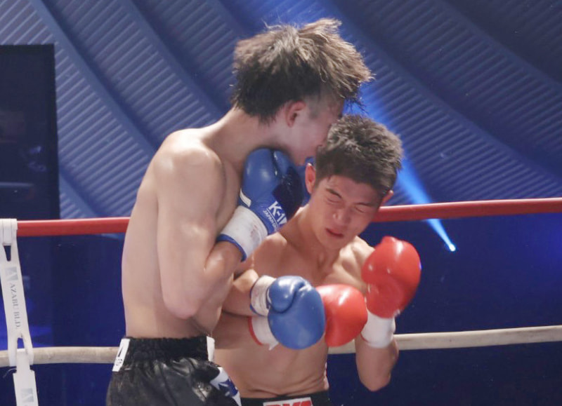 パンチで攻める寺田(左)
