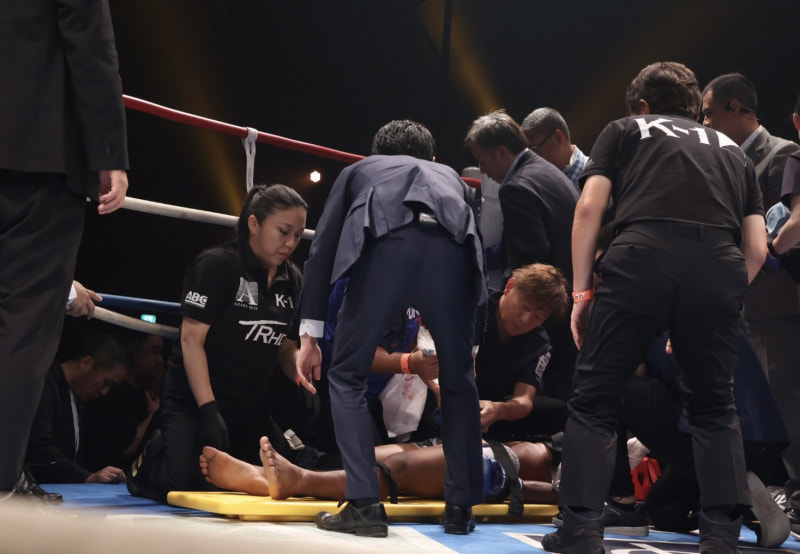 担架に乗せられたメンホン