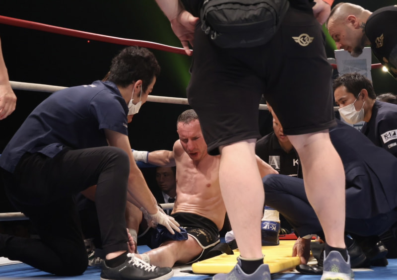 KO負けしたサンチェスは担架で運ばれた