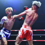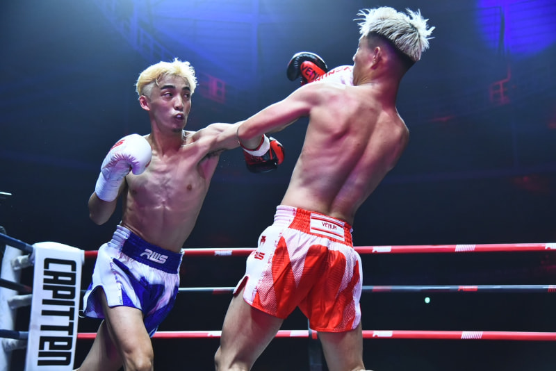 パンチを当てる小林(左)