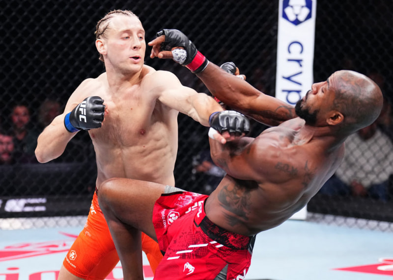ピンブレット(左)が一本勝ちで一本勝ちでUFC5連勝!©️UFC