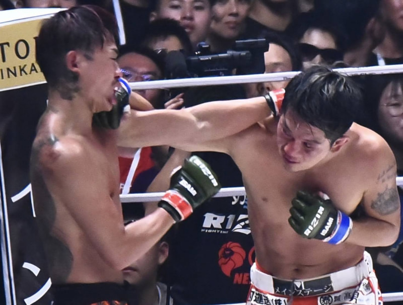 打撃で芦澤ぐらつく!互いに流血の打ち合いに!