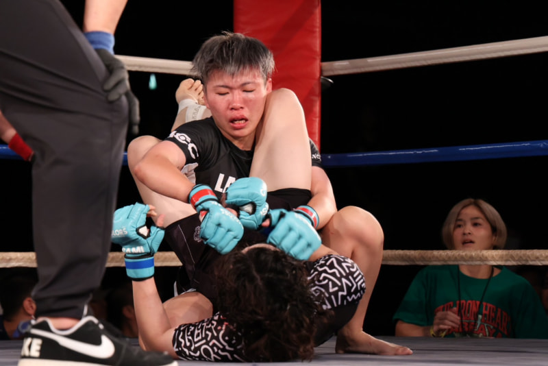 ボヒョンが腕十字を仕掛ける
