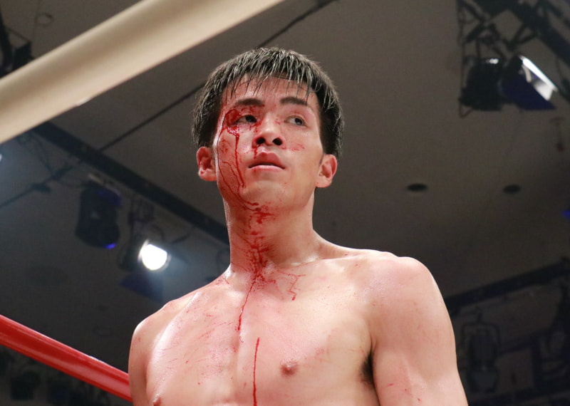 試合後も流血が止まらない古木の顔