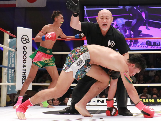 エイ(左)がデンサヤームにKO勝利