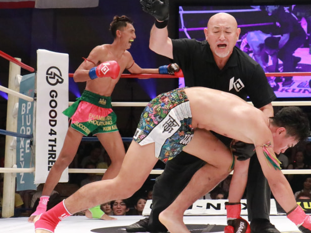 デンサヤームが立ちあがろうとするがレフェリーはストップ!