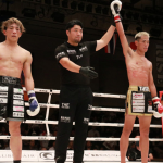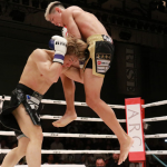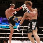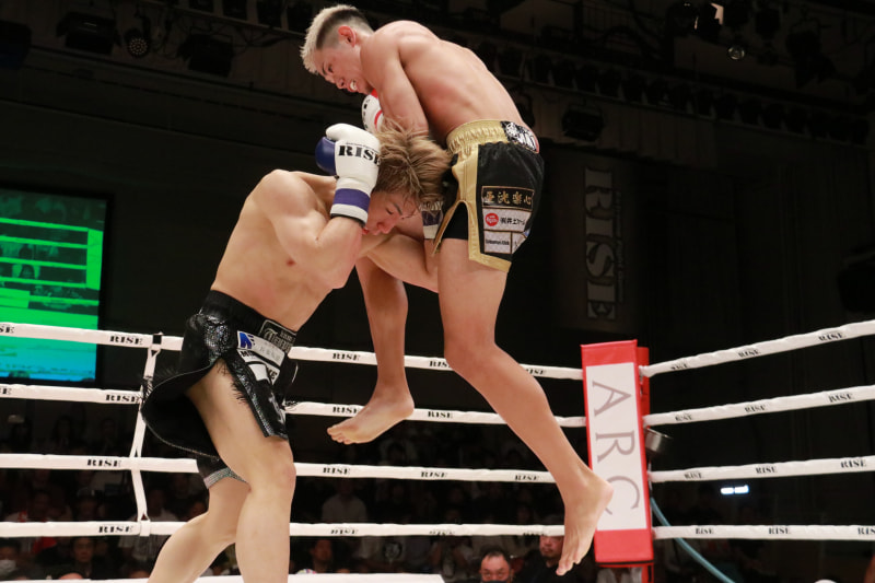 飛びヒザ蹴りを放つ近藤