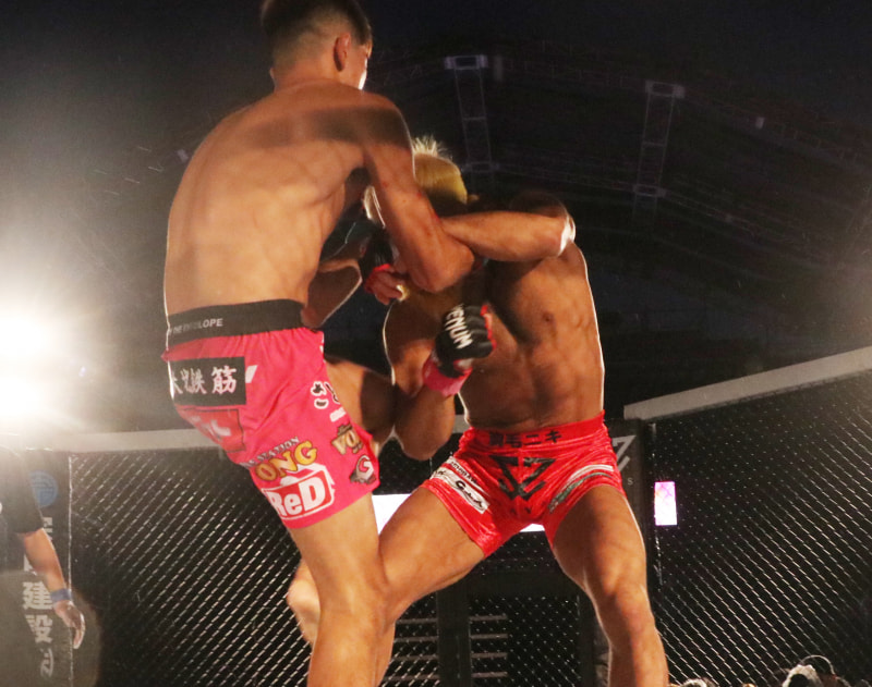 首相撲から膝蹴りがヒット
