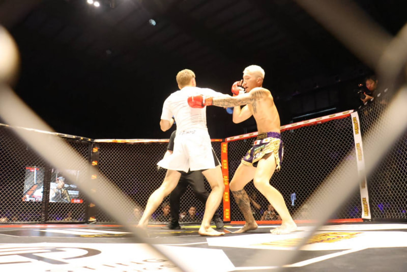 西垣がパンチで攻める