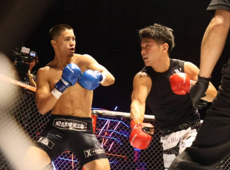たつ(右)がパンチを放つ