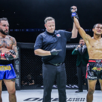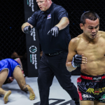 グローブをマットに置くハリソン©️ONE