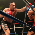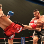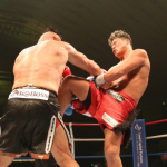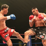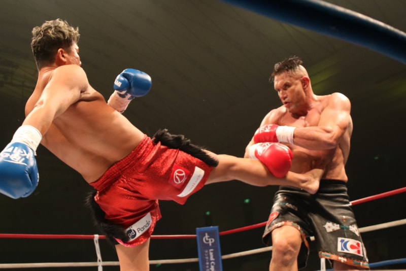 K-1レジェンド・バンナ(右)をキックで攻めるK-Jee