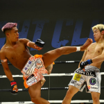 伊藤のキックを交わす塚本