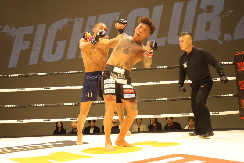 バックブローを決める山口