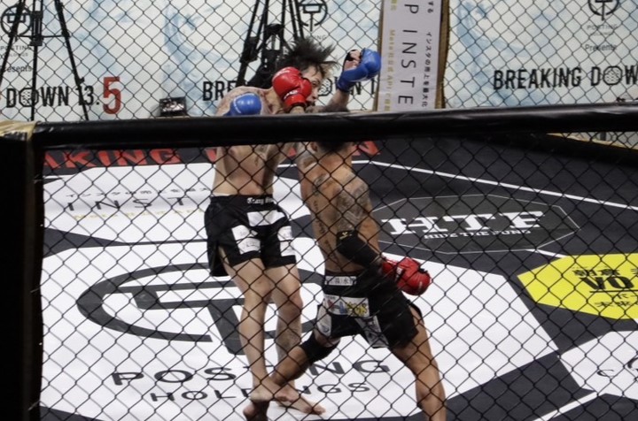 関谷がパンチを振る