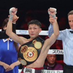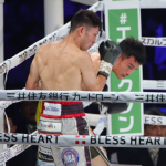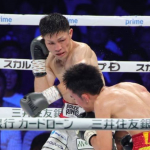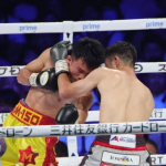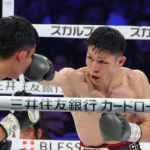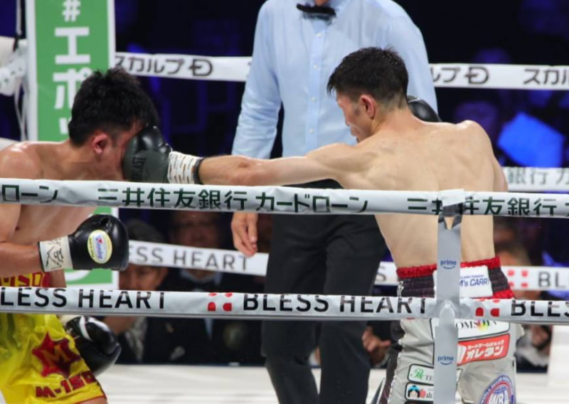 ユーリの左ストレートが顔面に食い込む