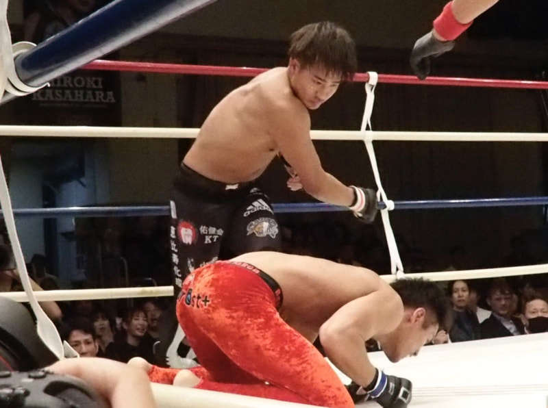 剛腕をヒットさせた笠原