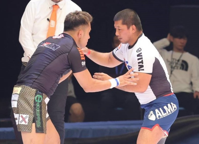 内柴(右)と新居(左)が組み合う
