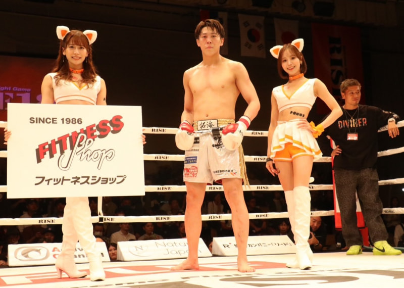 勝利した實方、コーナーにはセコンド城戸康裕の姿も