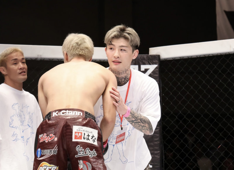 平本丈のセコンドについた兄・蓮(右)と大塚隆史(左)