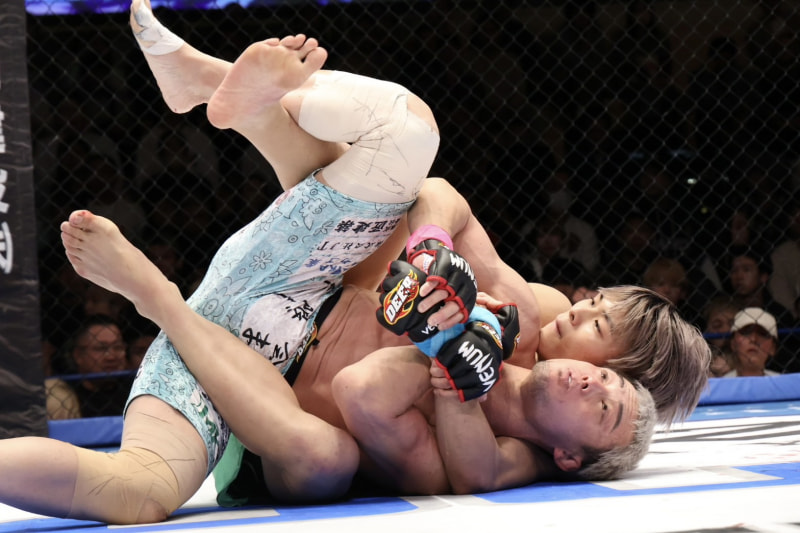 寝技を仕掛ける水野
