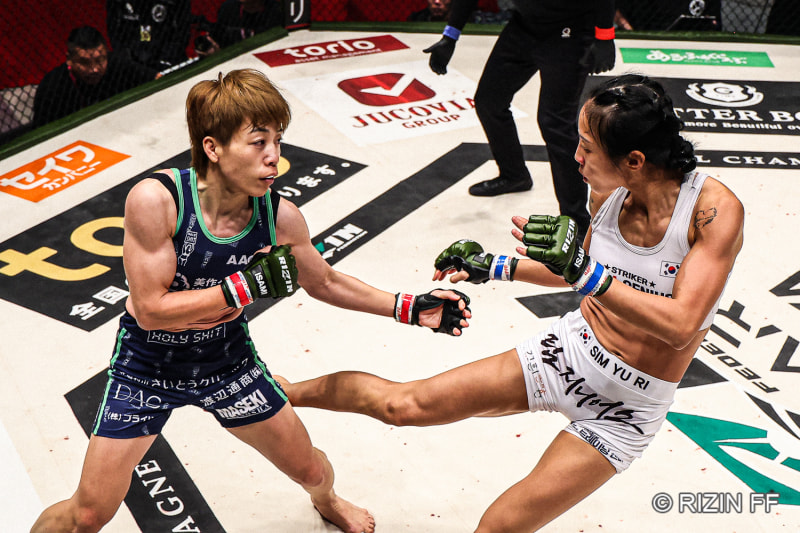ユリがキックで攻める