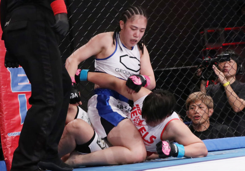 百湖(上)がゆりなにパウンドを浴びせる
