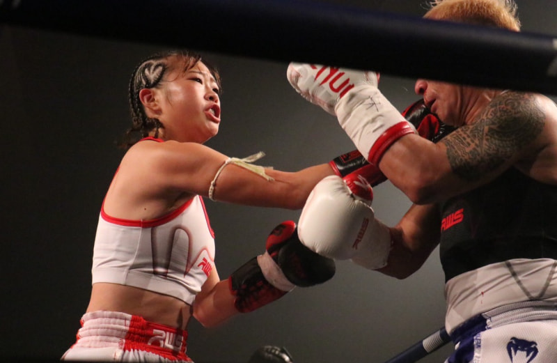 パンチ連打する藤原(左)、MIREY(右)は鼻血を出す
